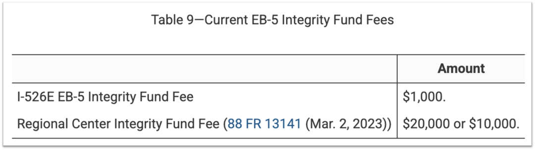 I-526/E(投资申请):11,160美元 → 9,625美元,降幅14%